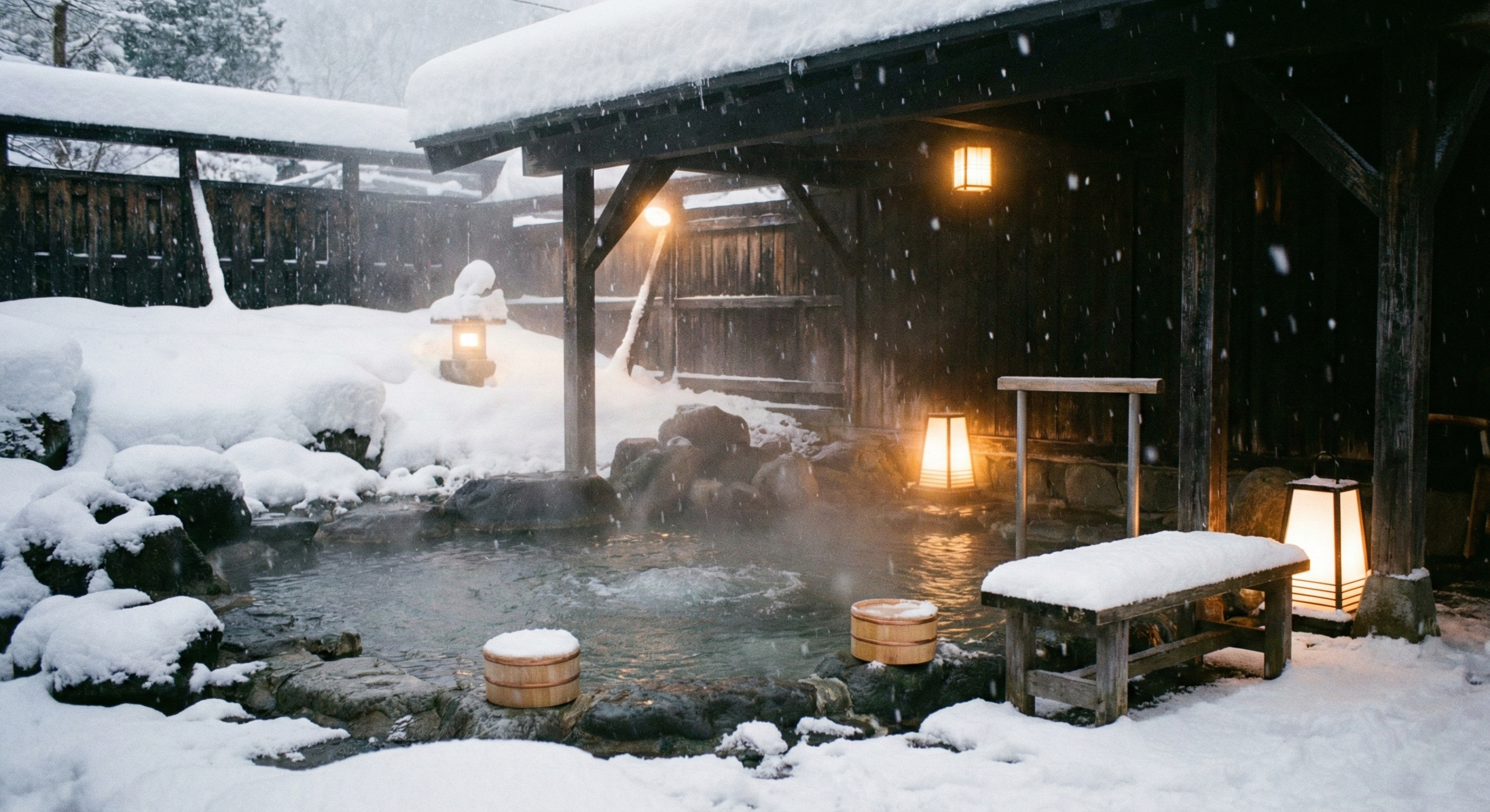 • Relax in traditional onsen, soaking in hot mineral waters while gazing at snowy peaks.