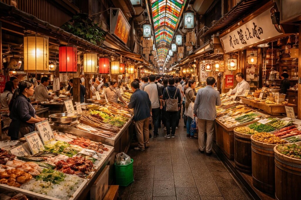 Discover Nishiki Ichiba Market, Kyoto’s legendary food market. Explore 400 years of culinary tradition, artisan vendors, and authentic Japanese flavors.